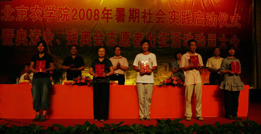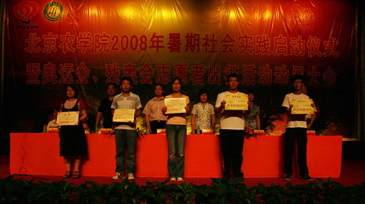 党委副书记王晓霞宣读了2007年暑期社会实践活动表彰决定,食品科学系、经济管理系、动物科学技术系荣获2007年暑期社会实践先进单位;生物技术系青年志愿者协会奥运宣讲团等12支团队荣获2007年暑期社会实践优秀团队,及李洋等78名社会实践优秀个人进行了表彰。学校领导分别为获奖代表颁发了证书,并向2008年暑期大学生社会实践团队代表授予了“2008年3044永利官网vip首页欢迎您暑期大学生社会实践团队”旗帜。