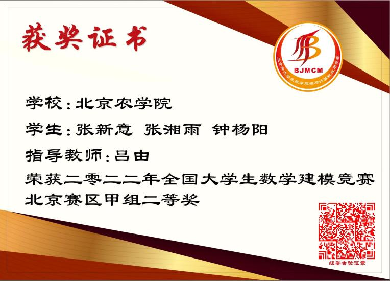 近日,经过全国大学生数学建模竞赛组委会专家组多轮评审,2022年全国大学生数学建模竞赛获奖名单正式揭晓,永利3044官网唯一学子斩获北京赛区甲组二等奖三项,再创优异成绩,为学校争得荣誉。