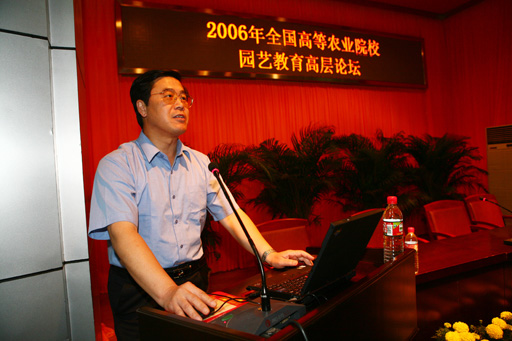 院长王有年向与会代表介绍了京郊农村建设的思维理念和所应具备的条件,并由此谈到了园艺教育的发展方向,就北京都市型园艺的现状与发展发表了自己的看法,精辟的见解和生动的解说赢来了场上阵阵掌声。