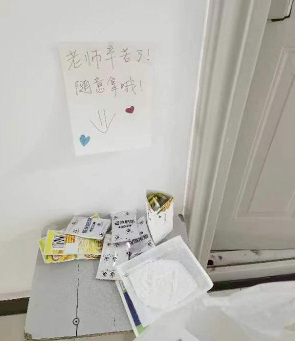 借送餐的机会跟同学们谈谈心、鼓鼓劲