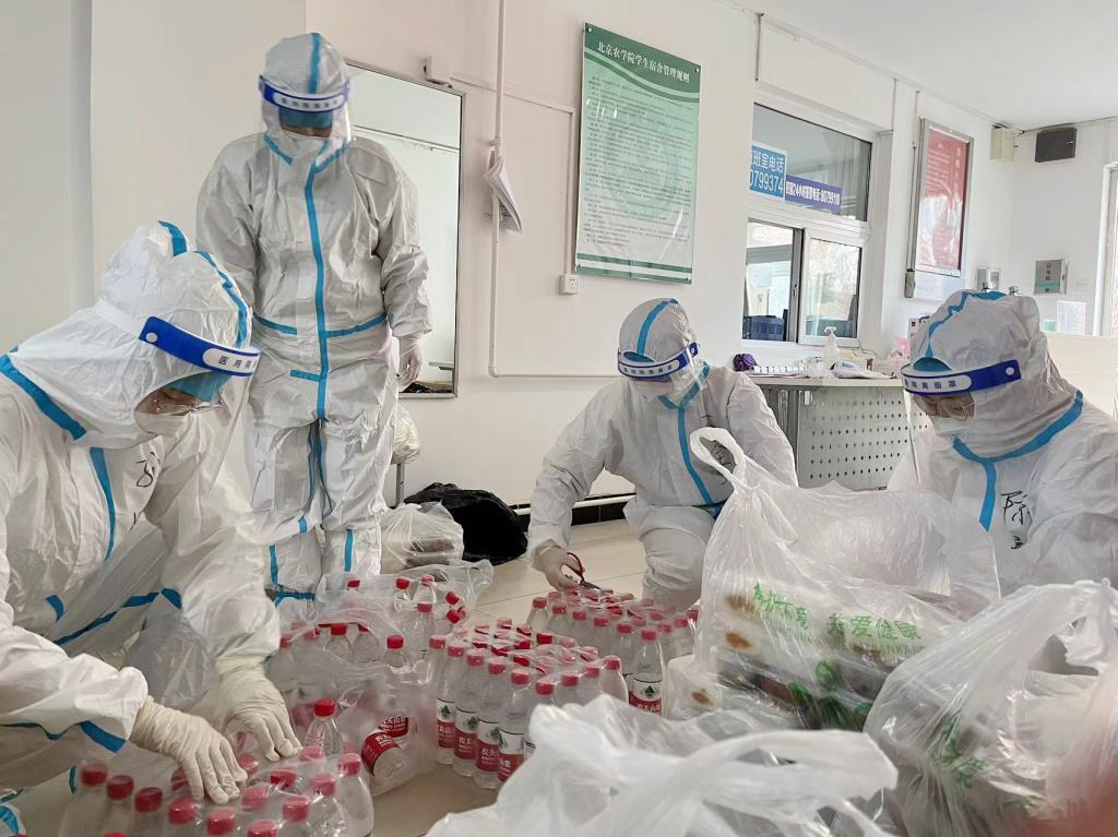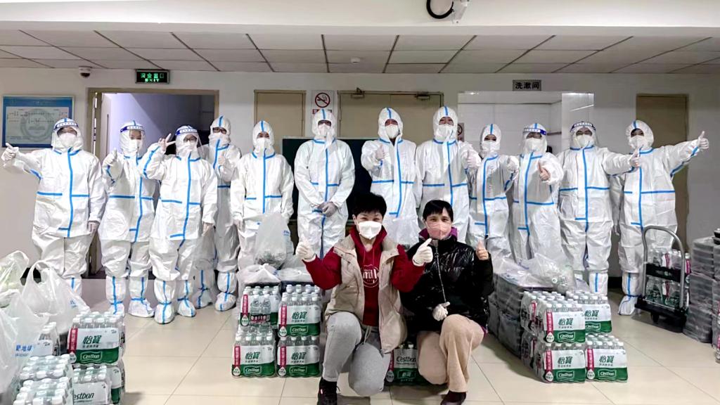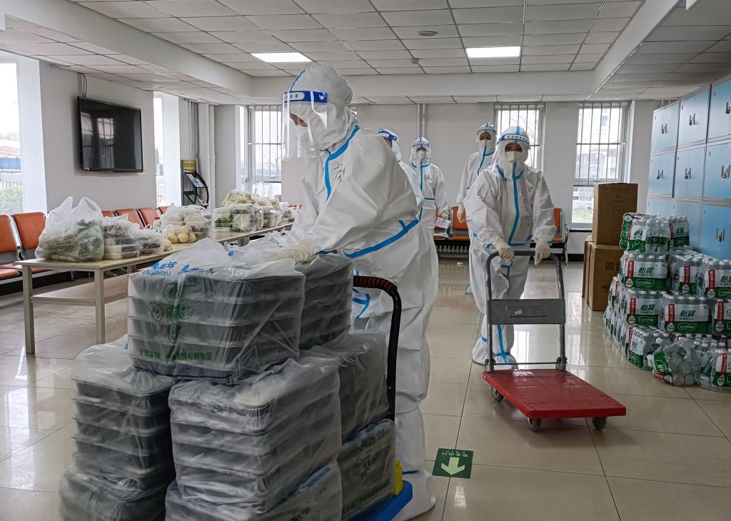 数百份饭菜、物资,她们一趟趟送到学生手中
