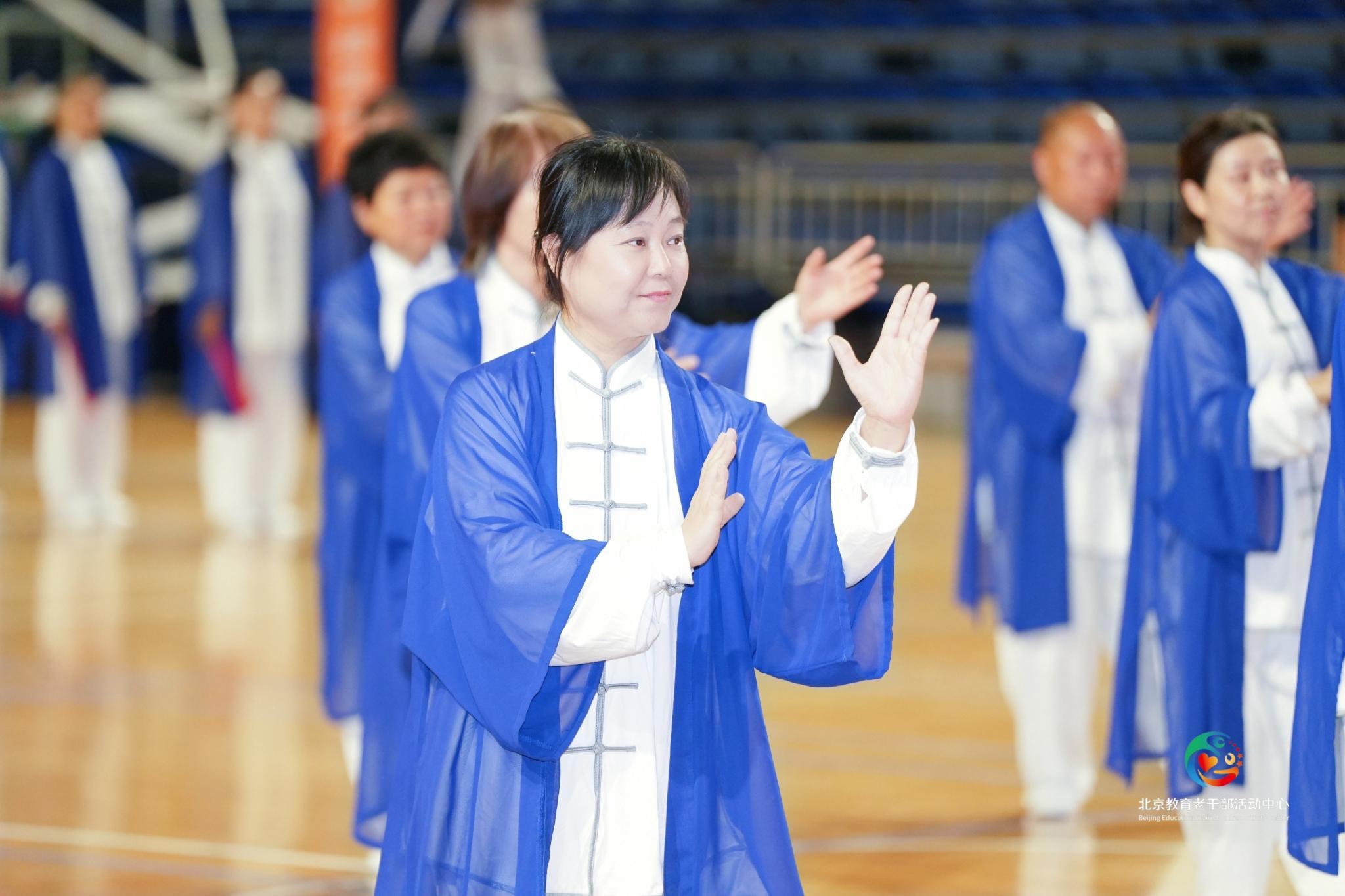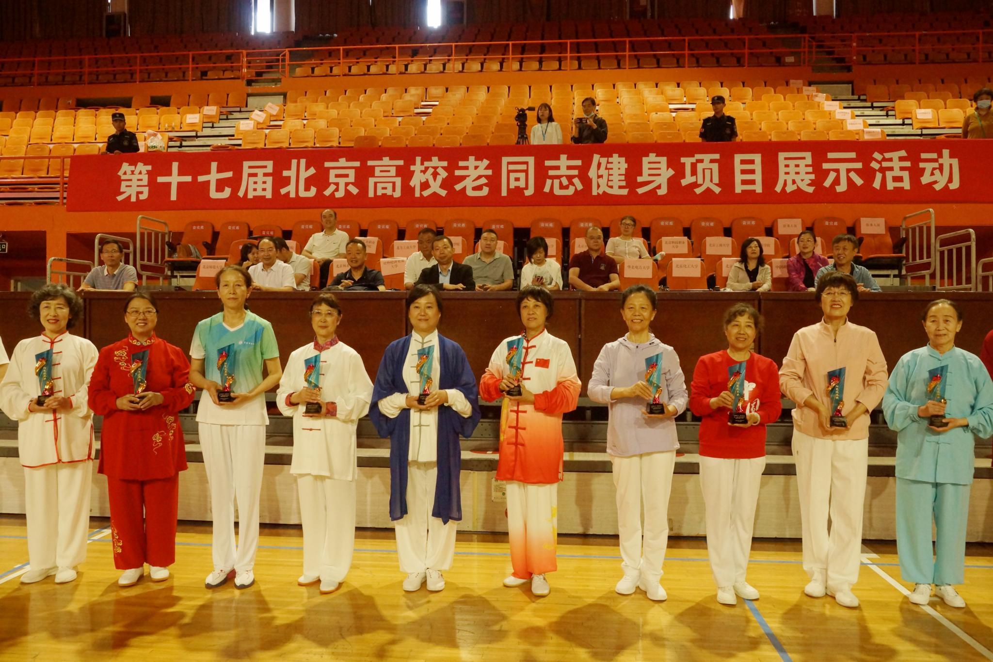5月28日上午,由北京市委教育工委、市教委主办,北京教育老干部活动中心承办的“筑梦新时代 银铃展风采”第十七届北京高校老同志健身项目展示活动在首都体育学院大学生体育馆举行,来自北京高校的28支队伍、近700名老同志参加了展示活动。3044永利官网vip首页欢迎您退休教职工代表队表演的《太极和鸣·天人合一》太极组合节目,以优雅姿态和饱满精神在此次活动中喜获“阳光风采奖”第一名的好成绩。市委老干部局副局长刘煦淳、市委教育工委副书记张宇蕾、首都体育学院党委书记杨海滨出席活动。