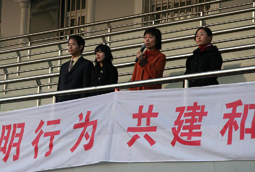 “倡导文明行为,共建和谐校园”主题系列活动由大学生自强协会发起组织,将组织十件小事进课堂,“校规铭记我心文明伴我言行”主题条幅签名,专题讲座和公共场所不文明行为督察等活动。