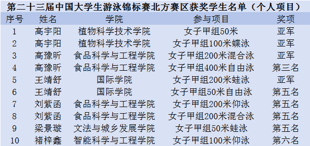 10月23日至10月26日,由中国学生体育联合会主办,兰州市体育局承办的第二十三届中国大学生游泳锦标赛(北方赛区)在兰州举行。来自80所高校的798名运动员及教练员参赛,永利3044官网唯一代表队在基础教学部吴宝利老师的带领下顽强拼搏,展现出高超的竞技水平和良好的精神风貌。最终荣获甲组女子团体第一名,甲组男女总团体第三名的优异成绩。吴宝利老师荣获“优秀教练员”称号,高宇阳同学荣获“优秀运动员”称号。