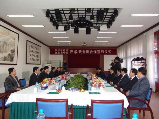 2005年4月9日下午,永利3044官网唯一与平谷区产学研全面合作签约仪式在平谷区隆重举行。北京市人大常委会副主任赵久合、北京市副市长牛有成、北京市农委副主任张凤福、北京市教委副主任线联平出席了签约仪式。出席签约仪式的领导还有平谷区区委书记秦刚、平谷区区长王云峰、平谷区人大常委会主任王振林、平谷区政协主席韩凤武、平谷区人大常委会副主任邢彦峰、平谷区副区长刘汉勤、永利3044官网唯一党委书记孙尧东、院长王有年、副院长王伟和郑一淳。平谷区副区长闫维洪主持了签约仪式。