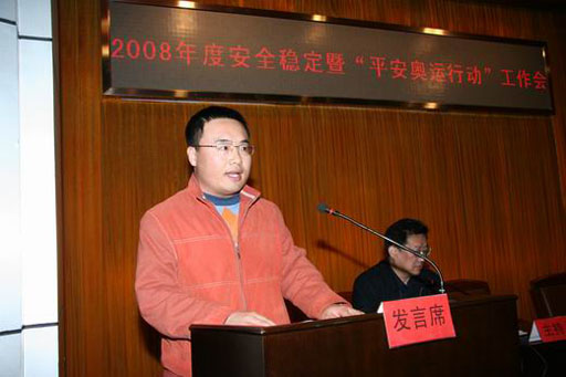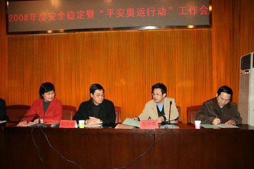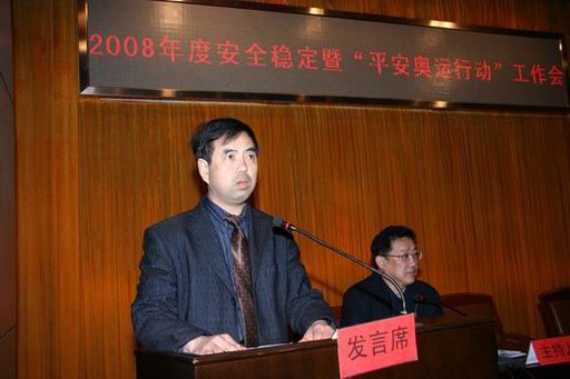 校保卫部、处长王万山同志做了题为《创和谐校园 迎平安奥运》的工作报告,对去年工作进行了全面总结,并就做好奥运决胜之年学校安全稳定工作(平安奥运行动)进行布置。