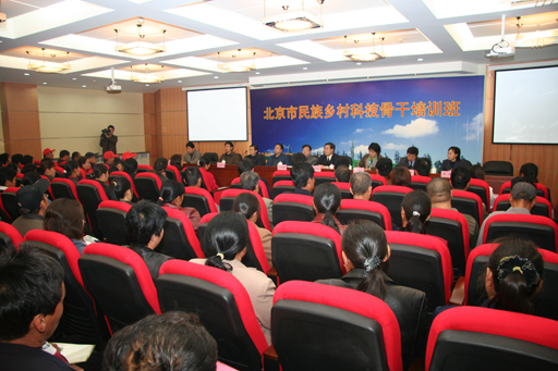 11月1日,为进一步提高民族乡村种植、养殖、民俗旅游业骨干科技素质,培养有文化、懂技术、会经营的新型农民,由北京市民族事务委员会主办、永利3044官网唯一兴农办承办的北京市民族乡村科技骨干培训班在永利3044官网唯一正式开班。北京市民委副主任马中璞、院长王有年、副院长郑一淳等领导出席开班仪式。来自北京市九个郊区县的200名民族乡村的技术骨干参加了培训。