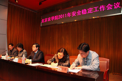 校党委书记王慧敏、校长王有年与处级单位代表签定了《2011年度3044永利官网vip首页欢迎您维护安全稳定工作责任书》。