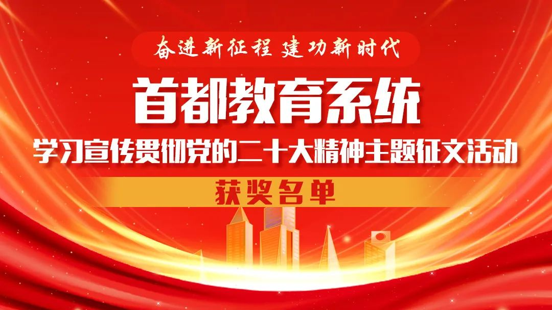 据悉,此次征文活动旨在深入学习宣传贯彻党的二十大精神,进一步激发首都教育系统广大师生奋进新征程、建功新时代的昂扬斗志。根据市委教育工委征文活动相关工作安排,经过各区各高校推荐、专家评审、网络公示等环节,确定了获奖作品一等奖76篇、二等奖120篇、三等奖106篇、优秀奖作品149篇。