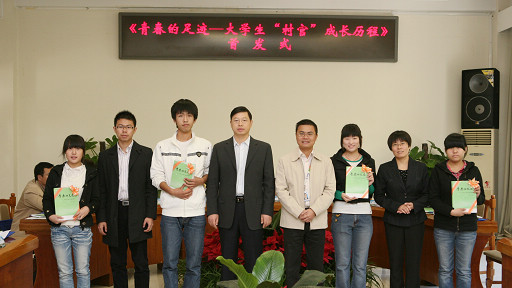 同时,2006级“村官”王贺、胡一萍,2007级“村官”杜振伟,2009级“村官”马志璞纷纷在会上发言。2008级经济管理学院学生陆璐、李晨谊,2008级生物技术系解语晨,2009级计算机信息与工程系陕娟娟代表在校生在会上发言。