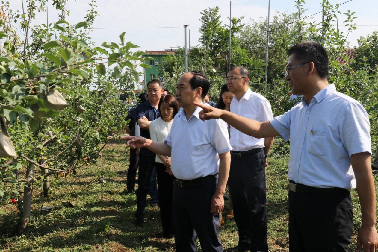 调研中,周开让一行先后来到阳坊镇四家庄村、崔村镇真顺村、延寿镇湖门村科技小院,深入田间地头实地了解3家科技小院在科技帮扶、促进增收、辐射带动、发展集体经济等方面的工作成效。在四家庄村科技小院,调研组一行实地察看并听取了科技小院指导老师、文发学院毕宇珠副教授对“道德银行”积分制、乡村文明主题墙绘活动等方面的介绍。在真顺村科技小院,实地调研苹果树形改造、新品种引进等情况,听取植科学院张杰教授介绍老旧果园转型升级、引进优新品种、丰富种植结构等方面工作情况。在湖门村科技小院,实地考察湖门村民宿集群,听取文发学院马亮副教授介绍民宿庭院环境改造、文化要素提炼等景观整体提升情况。