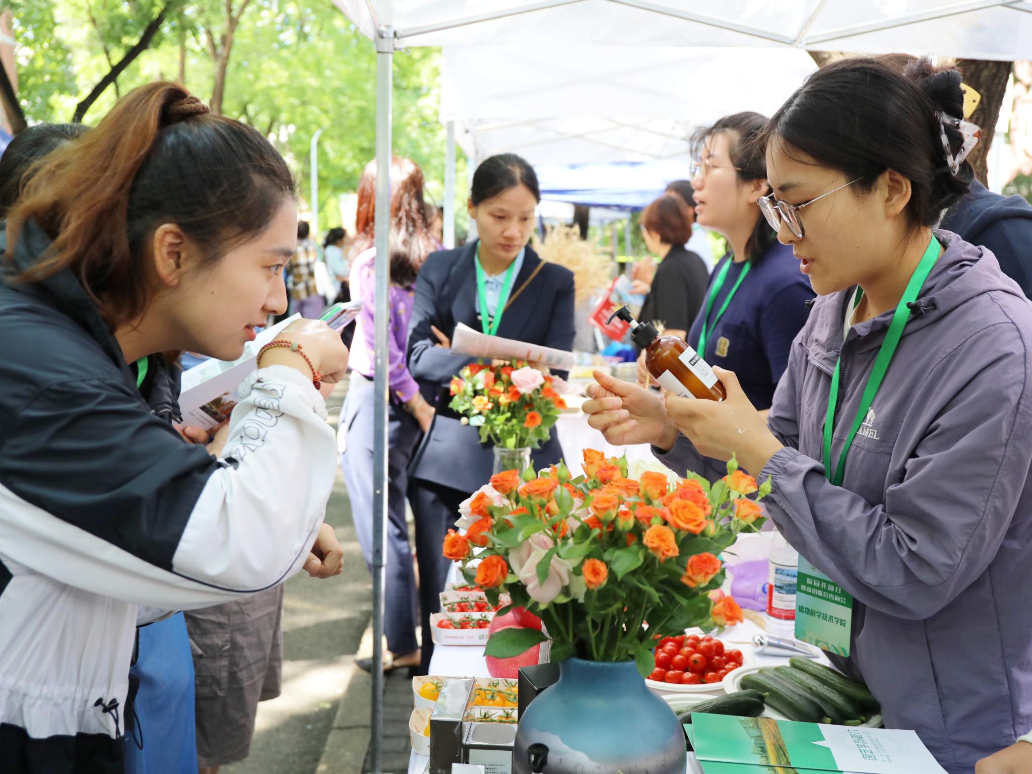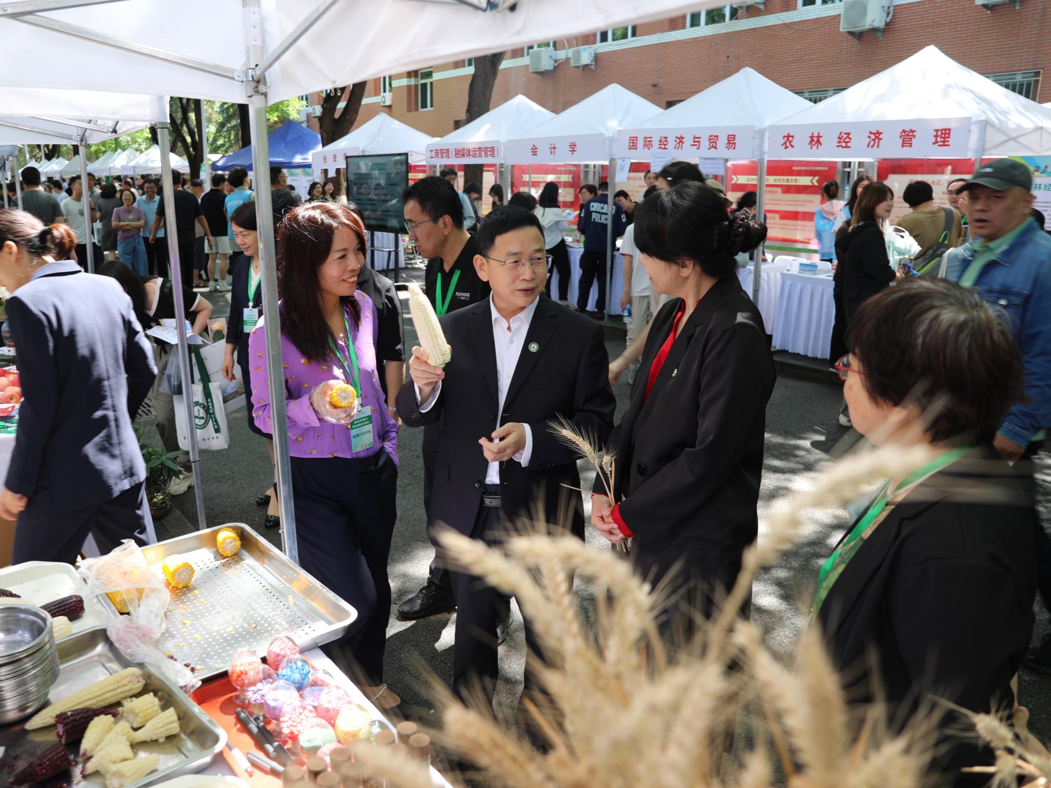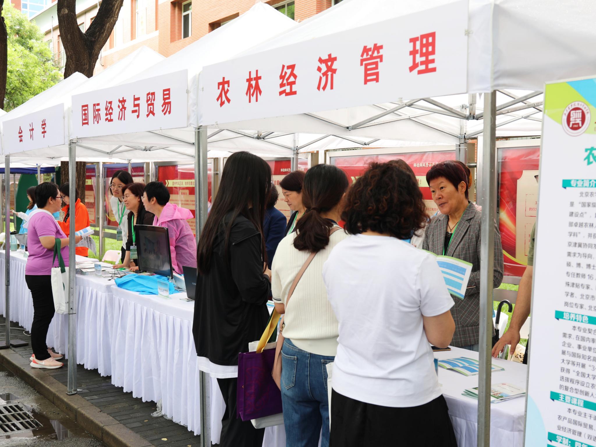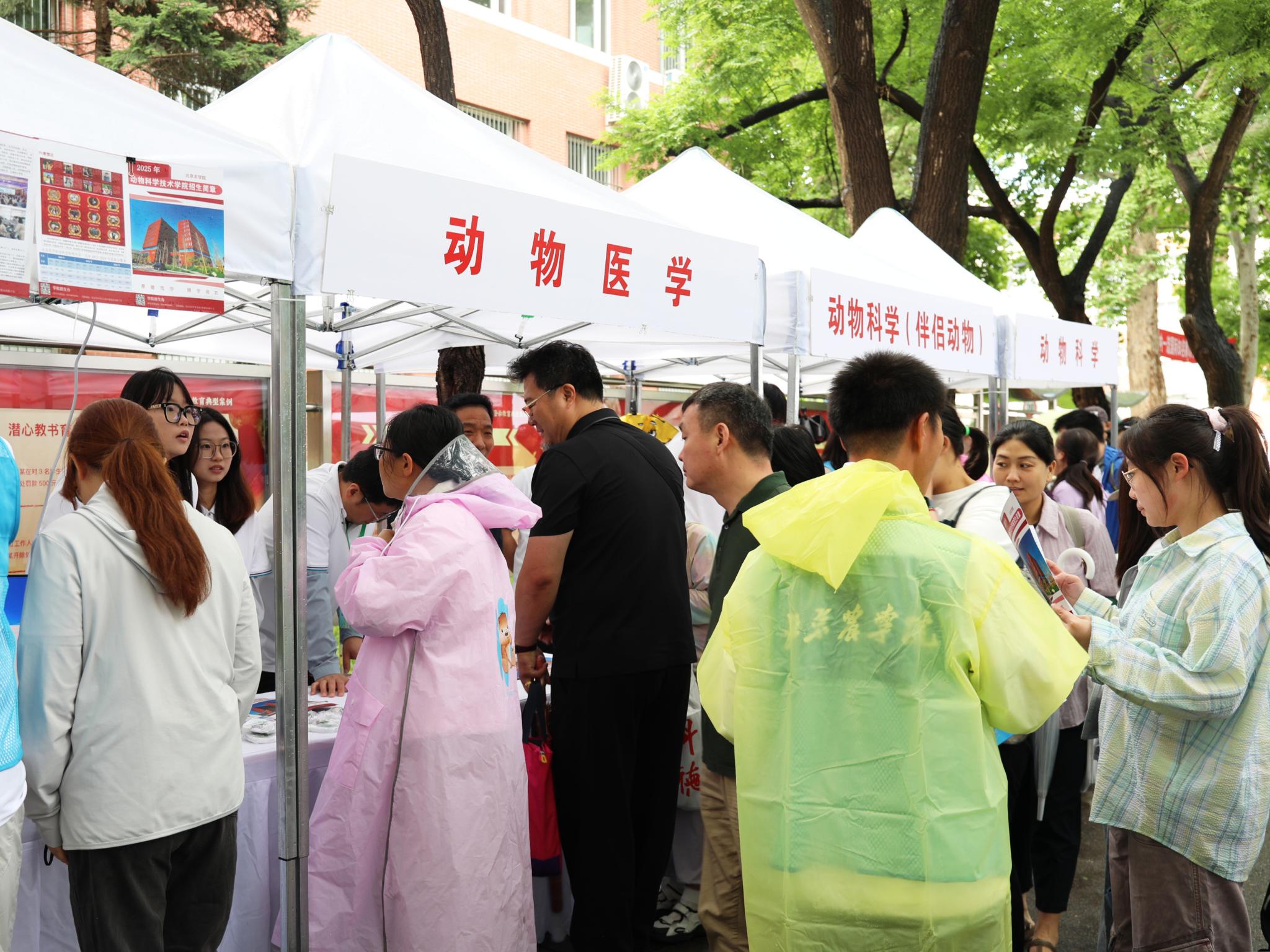 生物与资源环境学院通过组培苗、植物和昆虫标本、昆虫栖息微景观、成土矿物、无人机遥感等展品,充分展现了学院理、工、农专业特色;植物科学技术学院展出的番茄、北农冰栗、水果玉米、多种花草以及相关衍生产品吸引考生驻足咨询,老师们细致专业地回应考生及家长的询问;动物科学技术学院展台上,“针灸铜犬”模型展示了犬的经络穴位,全场巡游的导盲犬、异宠区的乌龟、蜥蜴、兔子以及考生家长抱来的大公鸡都吸引着大家的目光,现场咨询动物科学和动物医学专业的考生及家长络绎不绝;经济管理学院通过视频等多种形式详细展示了各专业的培养目标、课程设置、实践教学特色、国际化人才培养等办学成果,向考生和家长全面介绍了学院“招生-培养-就业”一体化的人才培养体系。