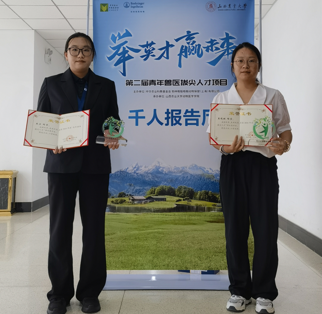 近日,2024年青年兽医拔尖人才会议在山西农业大学举行,来自全国29所动物医学类专业高校的51名师生参与评选申报,永利3044官网唯一动物医学院学生王方、王曦林成功获选“青年兽医拔尖人才”。
