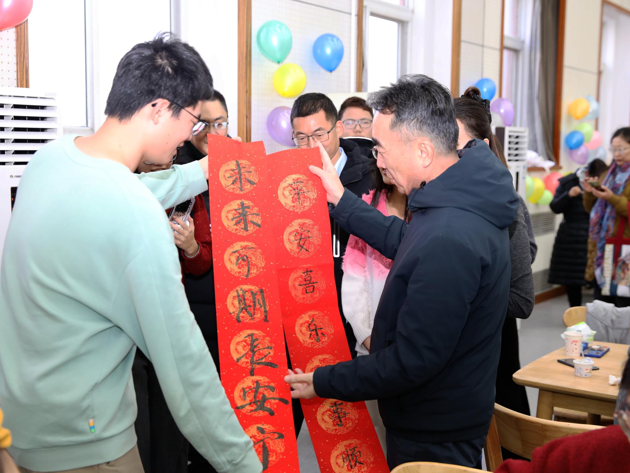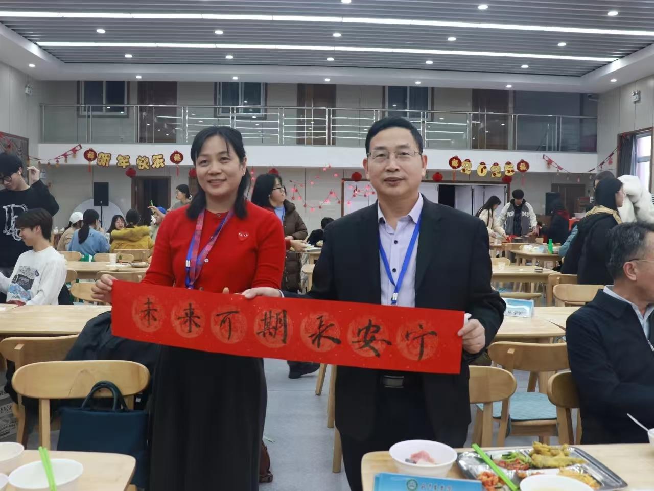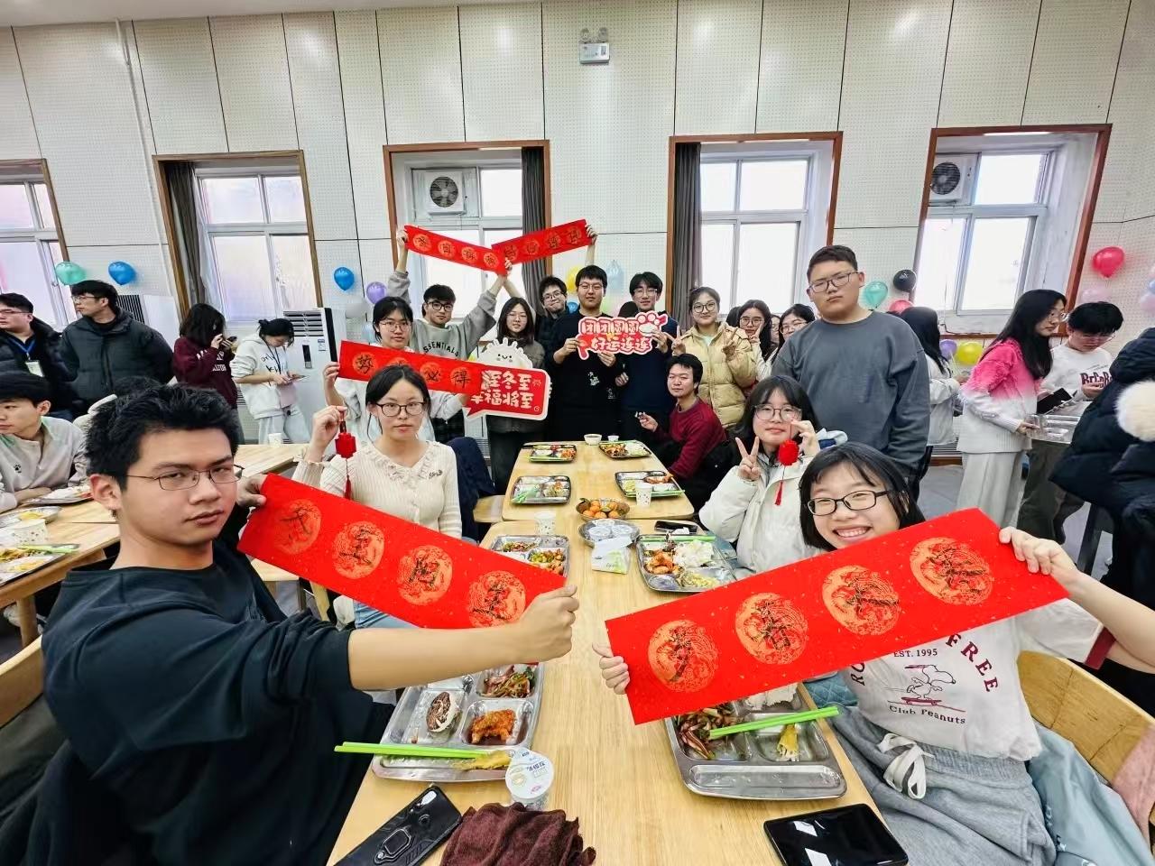 研考第一天恰逢冬至节气,食堂为考生准备了热腾腾的饺子。学校还组织了冬至“‘饺’好运 师生‘研’途送祝福”活动。校领导赵锋、段留生、郑品石与在校生一起包水饺,为考生送上诚挚祝福。
