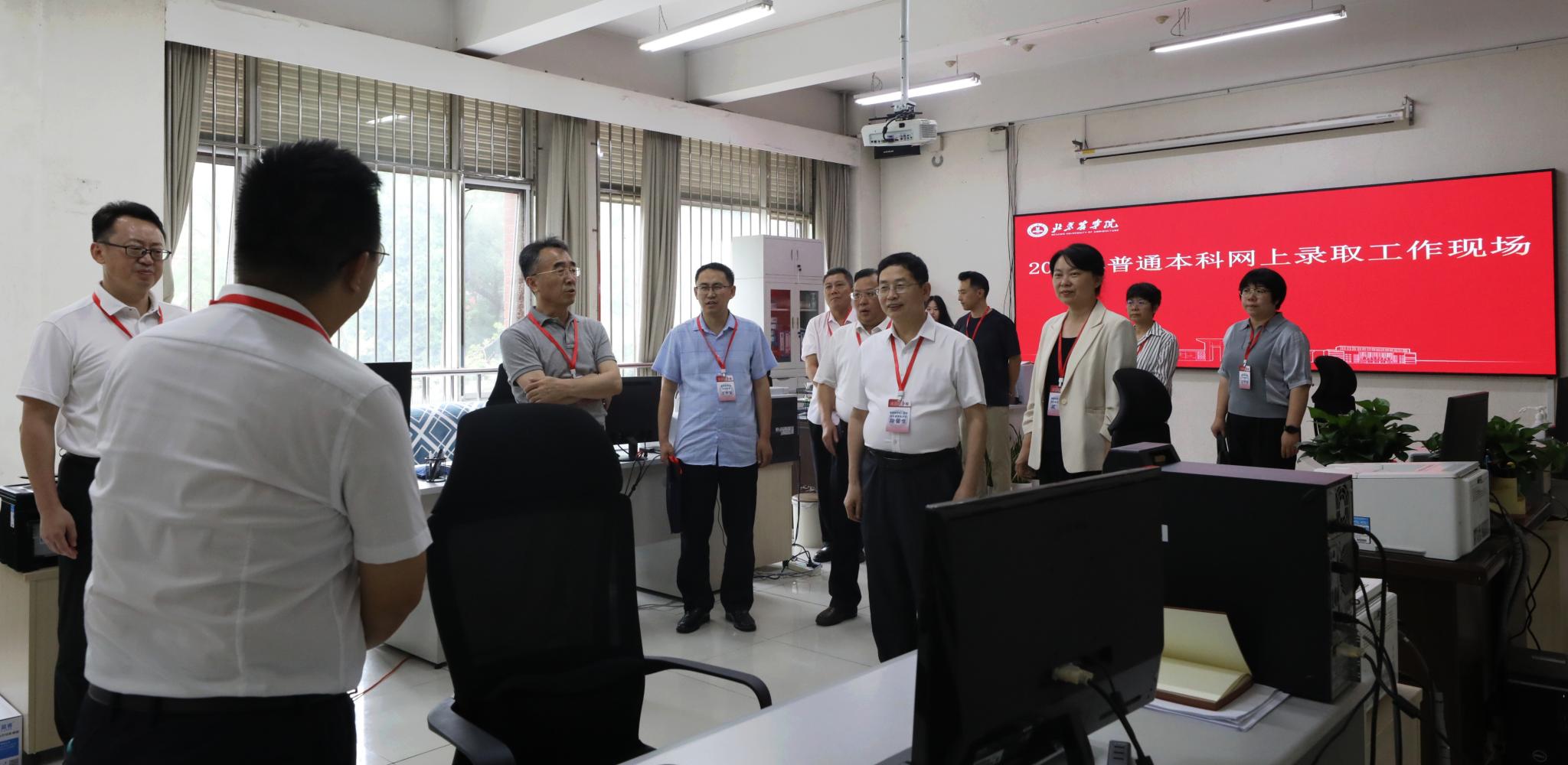 7月21日下午,党委书记赵锋,党委副书记、院长段留生,党委常委、副院长武艳,党委常委、纪委书记吴君楚到招生录取现场检查指导招生录取工作,并看望慰问现场工作人员。