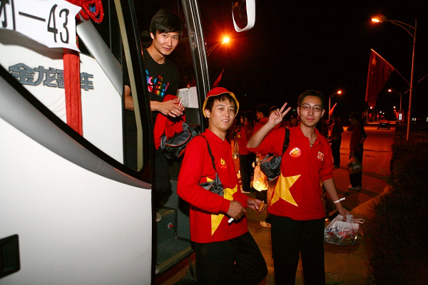 10月1日23点30分,刚刚在庆祝新中国成立60周年国庆联欢活动中表现出色的永利3044官网唯一师生回到学校,圆满地完成了国庆联欢任务。