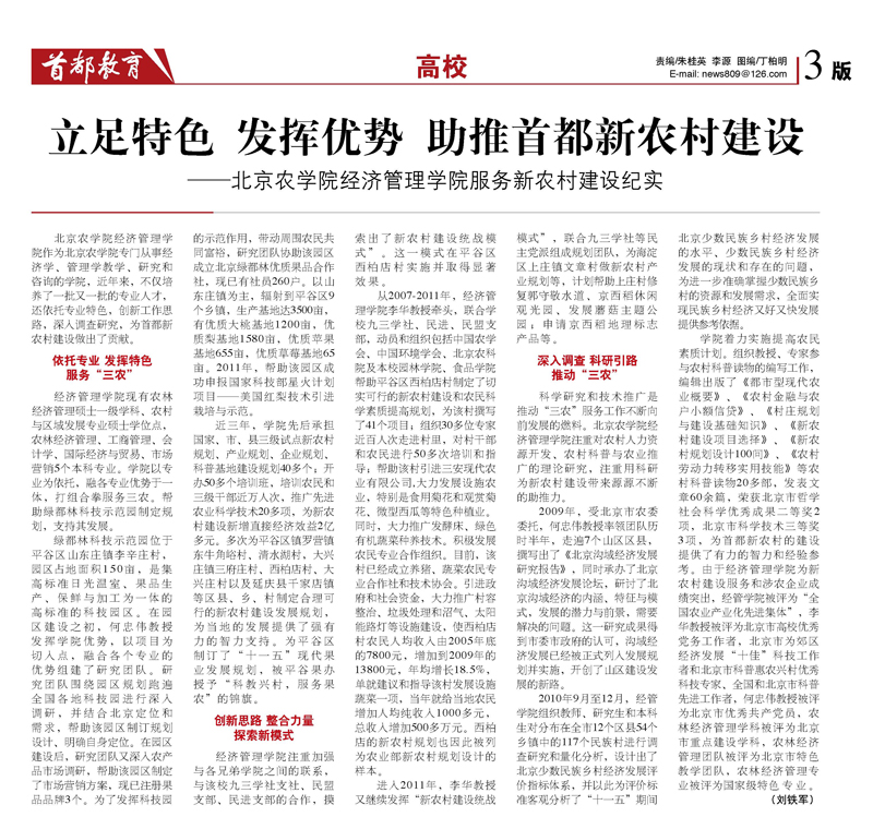 【首都教育】立足特色 发挥优势 助推首都新农村建设---3044永利官网vip首页欢迎您经济管理学院服务新农村建设纪实