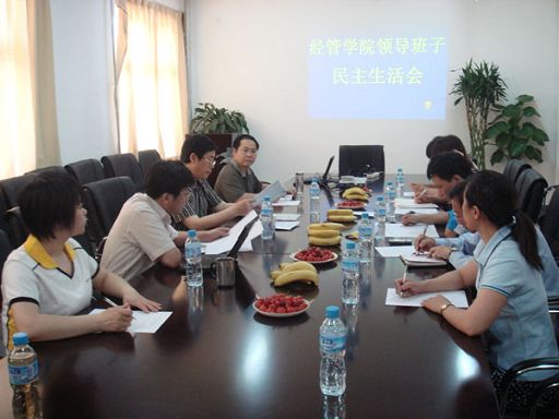 按照永利3044官网唯一深入学习实践科学发展观实施方案要求, 5月23日下午,经济管理学院召开了系领导班子专题民主生活会。校长王有年出席了会议,经济管理学院领导班子成员、教授代表工会代表、基层支部书记代表、民主党派代表参加了民主生活会。经济管理学院党总支书记李华主持会议。