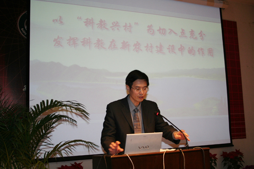 院长王有年教授,中共中央党校教授、平谷区副区长江涛,金盾出版社社长张延扬,国务院参事、九三学社北京市副主委刘秀晨分别以《发展都市型现代农业,实施科教文富民兴村》、《平谷区实施科教兴村的理论与实践探索》、《做好出版工作为建设社会主义新农村服务》、《关于社会主义新农村建设的几点想法》为题作了专题发言。