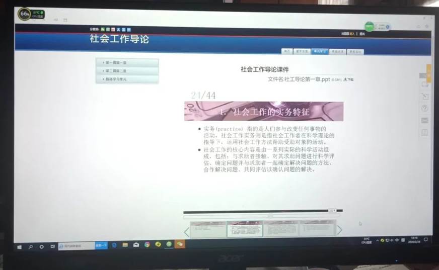 我和同学都以热情饱满的精神态度来迎接网络上的课程学习。虽然一开始有诸多不适应的地方,但同学们依旧按时按质地完成准备工作,因为我们深知,授课的老师以及保证我们正常学习的工作人员比我们更辛苦。
