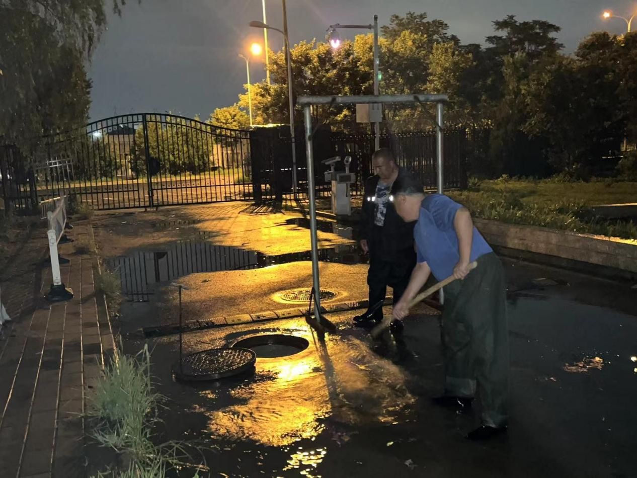 后勤基建处严格落实24小时在岗值班带班制度,组织应急抢险队伍随时待命,扎实筑牢汛期安全防线。认真分析研判校园防汛风险点,用沙袋封堵地势低洼的路段,防止内涝积水;重点检查校园内雨水管道、各分配电室,查看是否存在漏雨渗水、管道堵塞等情况;清理积水处、雨篦子、下水口等处的杂物,对低洼处、电缆井、集水坑进行抽水,确保排水畅通。