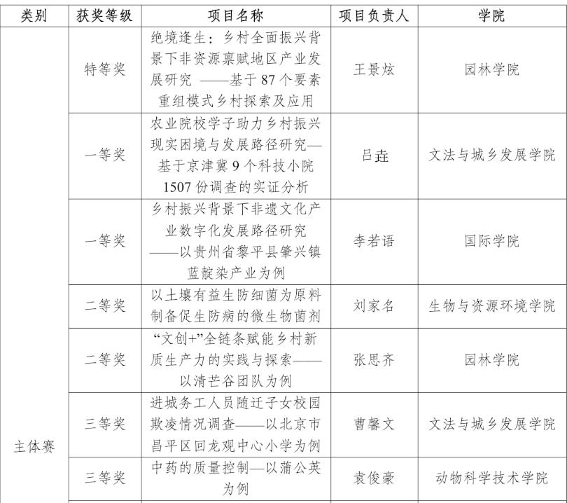 此次佳绩是学校深化“以赛促学、以赛促研”育人理念的生动实践。未来,学校将全面贯彻落实第四次党代会精神,持续深化创新创业教育,提高“挑战杯”赛事育人实效,突出育人导向,增强赛事引导力,引领激励广大学生实事求是、刻苦钻研、勇于创新、实干创先,培养创新精神和实践能力,树立科创报国志向、激发科创报国热情,为首都全面推进乡村振兴和率先基本实现农业农村现代化贡献青春力量。
