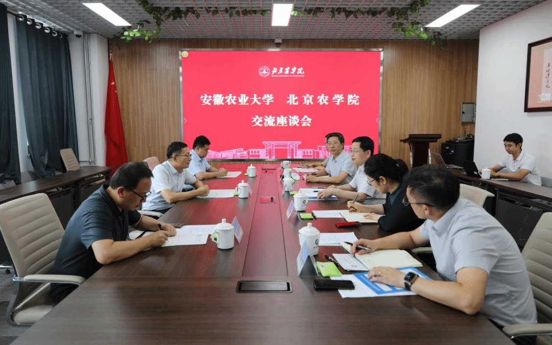 7月11日下午,安徽农业大学党委书记张庆亮一行来校调研,学校党委副书记、院长段留生出席调研交流会。
