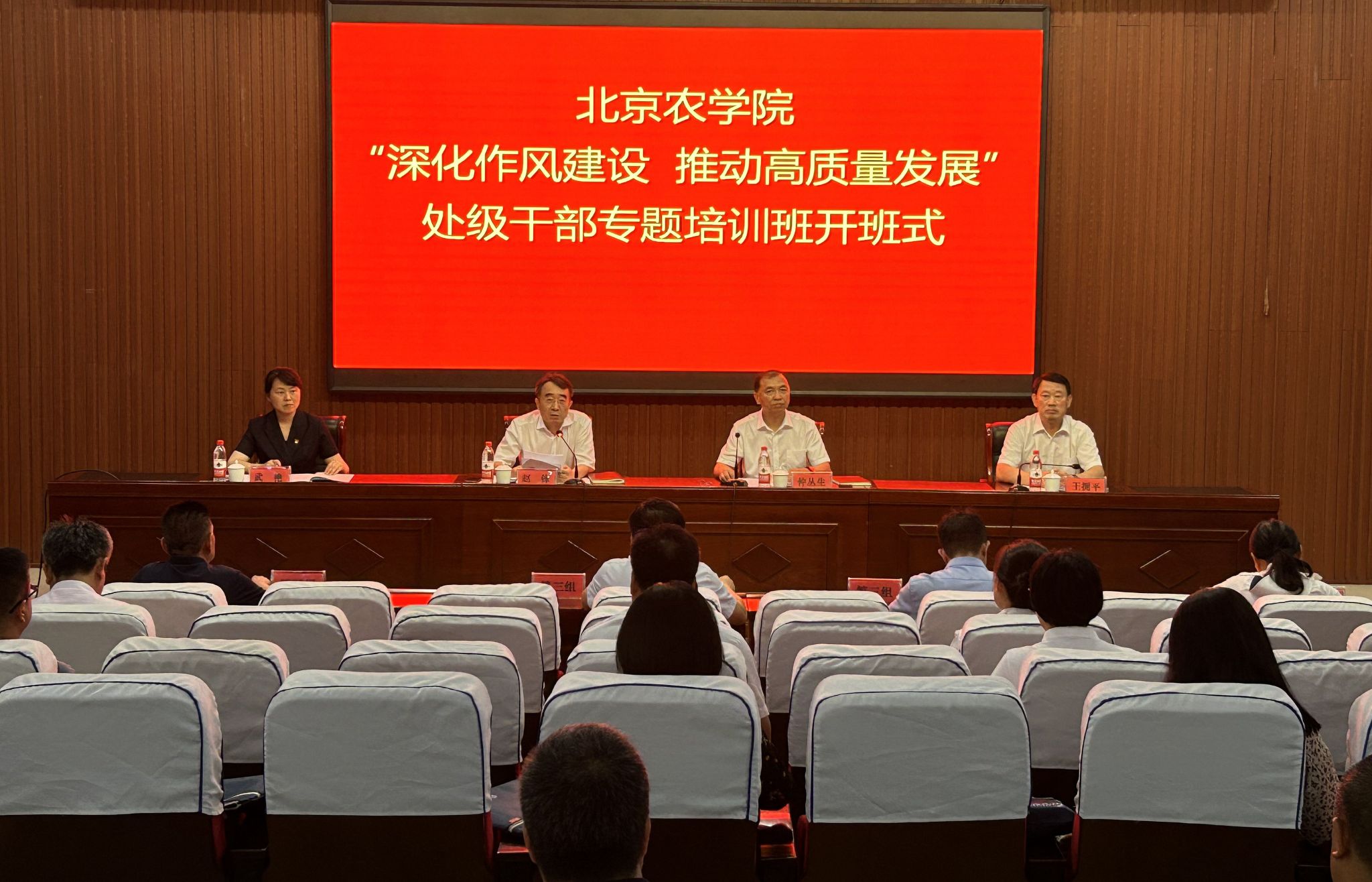 赵锋强调,要不断增强推动学校事业高质量发展的能力。锤炼忠诚之心,永葆政治本色,把忠诚体现在加强理论武装上、坚定政治定力上,体现在坚持和加强党对学校工作的全面领导、深入推进学校事业高质量发展的具体工作中;夯实作风建设,持续锤炼真抓实干的过硬作风,树牢全心全意为师生服务的宗旨意识;主动担当作为,始终保持奋勇向前的冲劲和攻坚克难的勇气,以实际行动回答好“教育强国、北农何为”“农业强国、北农何为”的时代命题;常照清廉之镜,筑牢拒腐防变的防线,注重慎初、慎微、慎独,守好把严法律底线、纪律红线、思想防线。赵锋要求全体处级干部要以“时时放心不下”“事事放在心上”的责任感和事业心,不断提升与高质量发展相匹配的视野、格局、能力和本领,以更加昂扬的士气、更加振奋的精神、更加优异的成绩迎接学校第四次党代会的胜利召开,为全面加快建设高水平应用型现代农林大学做出更大贡献,为服务新时代首都发展和“四个中心”建设,为全面推进乡村振兴、建设教育强国和农业强国贡献“北农力量”。