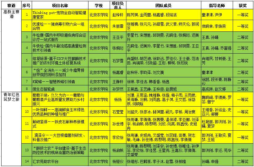 永利3044官网唯一共有67个项目入围此次大赛北京市赛,其中59项获奖,获奖比例达88%以上,比2022年提高近10个百分点,项目质量显著提高。获奖总数位居市属高校第二名,“青年红色筑梦之旅”赛道一等奖获奖总数位居市属高校第一名。同时,由动物科学技术学院侯晓林教授等人指导的“优速检-猪病毒引物六合一组合物”(项目负责人:朱丽霏)、由动物科学技术学院童津津副教授等人指导的“Thinking pet-宠物全自动智能健康管家”(项目负责人:赵梓轩),由植物科学技术学院王维香副教授等人指导的“一叶知鲜-高端鲜食玉米绿色优质品种的种植与推广”(项目负责人:石莹莹)获得晋级国赛资格。