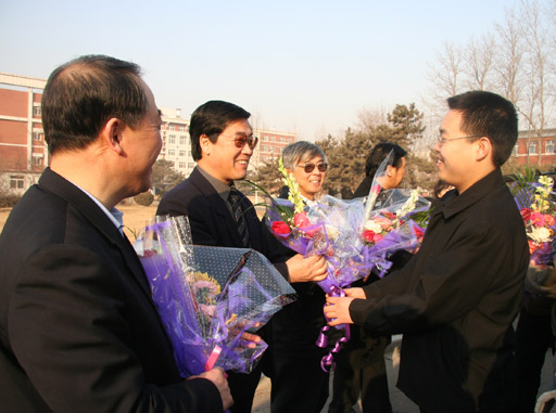 ,初春的太阳,用明亮映衬着喜气洋洋的校园。办公楼前,即将上任的15名“村官”助理手捧植科系、食品系学生赠送的鲜花,食品系的学生展着“上北农,学科技,谱写都市农业新篇章;下基层,做村官,建设社会主义新农村。”欢送条幅。