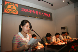2006年6月30日上午10:30时,继2006届毕业典礼之后,永利3044官网唯一又隆重举行了2006年 “专升本”入学仪式。大会由范双喜处长主持,副院长杜晓林、学生处长孙亚利、宣传部部长程春生、教务处副处长杨剑平、沈文华出席了入学仪式,并为每位专升本学生发放了录取通知书。
