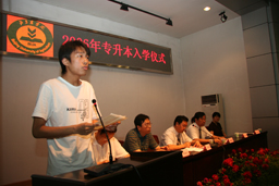 新生代表张楠发言,她表示升入本科后,会更加努力学习,珍惜时光,不辜负领导和大家的期望。在校生代表丁建新发言,他热烈欢迎新同学加入到他们的行列。