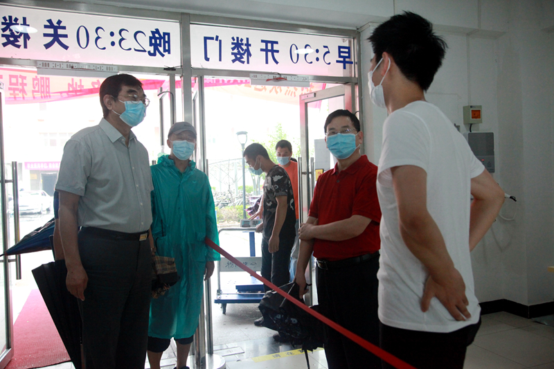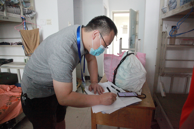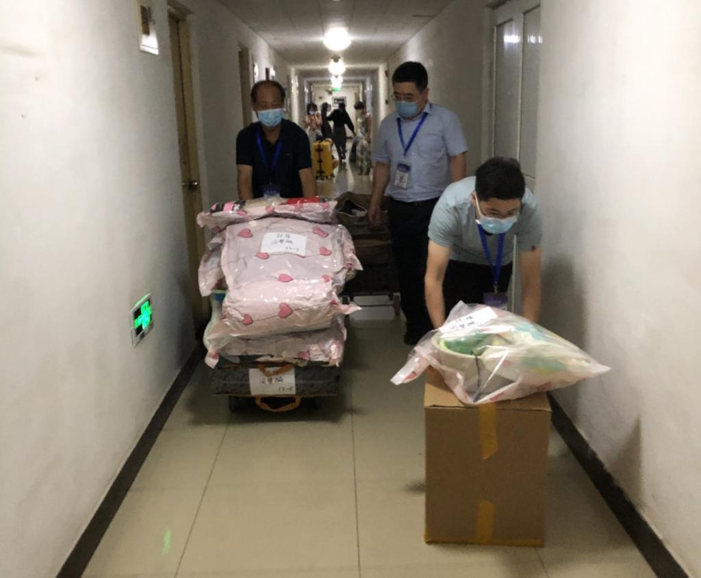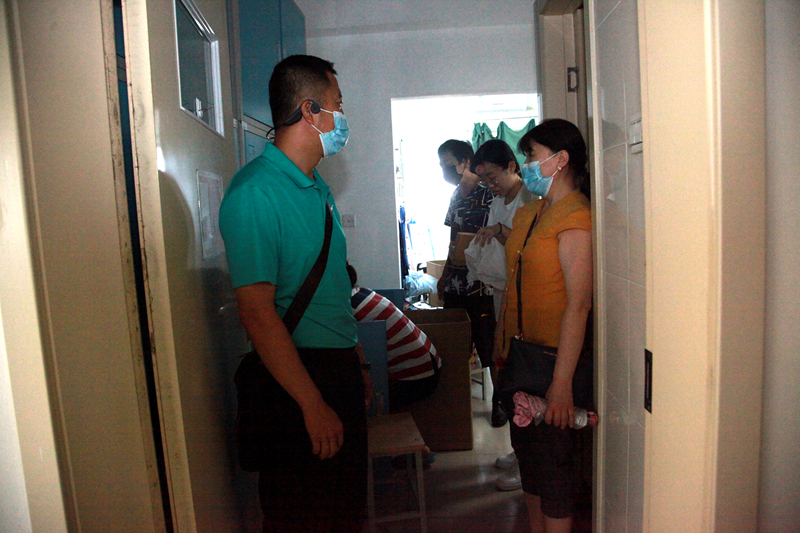 7月9日上午,党委书记杨军、副校长段留生深入学生宿舍调研指导毕业生行李打包邮寄工作,看望慰问现场工作的教职员工,提醒大家雨天注意安全,做好个人防护。相关职能部门负责人陪同调研。