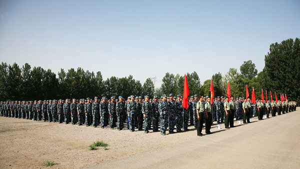 6月28日早8:30, 2008级学生军训团1881名同学在怀柔群英昊学生军训基地训练场,隆重举行开营仪式。