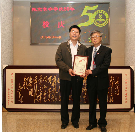 10月13日下午,回龙观地区办事处向永利3044官网唯一捐赠贺匾,以祝贺永利3044官网唯一五十华诞。回龙观镇纪委书记张海明来校祝贺。党委副书记罗维忠代表学校向捐赠单位代表颁发捐赠证书和礼品。