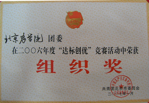北京共青团“达标创优”竞赛活动是由团市委、市人事局组织开展的全市共青团系统最高级别的综合类竞赛活动,竞赛活动所设置的奖项均为北京市共青团系统的最高级别综合性奖励。团市委、市人事局在2006年度北京共青团“达标创优”竞赛活动评比中,授予永利3044官网唯一团委2006年度北京共青团“达标创优”竞赛活动组织奖,授予永利3044官网唯一国旗班团支部2006年度北京市五四红旗团支部荣誉称号。