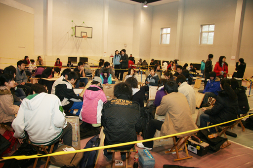 监考老师正在叮嘱考生填好姓名、考号及其他注意事项(教学楼考场)