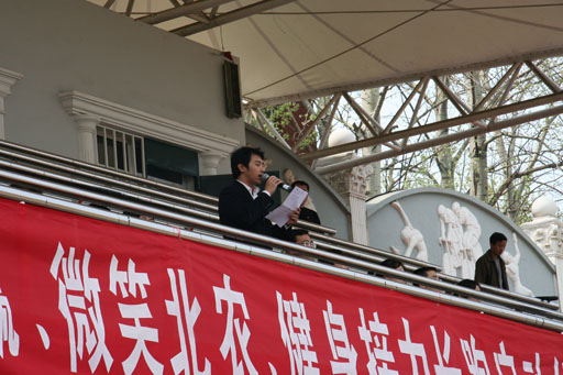 4月10日,由各系组成的五个方阵环绕北农优雅而美丽的校园,依照奥运五环的形状完成全程2008米的长跑。同学们沿着北农特有的路线,充分利用校园宁静、宽广的环境,共同完成2008米的跑步全程。每一位同学都怀着无比激动的心情,带着对2008年北京奥运会的畅想、激情与热爱,挥舞着旗帜,在玉兰的高洁和桃花的烂漫下充分感受着我们共同的北农之春。