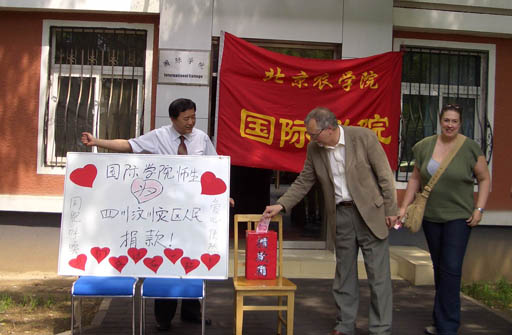 3044永利官网vip首页欢迎您国际学院-外语部的师生在获悉四川地震后,均积极为灾区筹款。在永利3044官网唯一访问的哈勃亚当斯大学副校长Professor Brian Revell和专业负责人Sandra Turner亦捐款给了四川灾区, 希望以此表达对地球另一端灾害中人民的关心与哀悼。自然的力量人类无法阻挡,但是,大灾有大爱。面对灾难,无所谓天南海北,我们彼此拥有,互相扶持。我们拥有无穷的信心和决心,相信最终一定可以战胜一切。灾区的同胞们,你们永不独行!