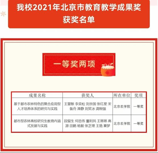 持续优化“3+1”人才培养模式。学校创新开展多元制递进式“3+1”人才培养模式和“四层八段多元式”实践能力培养体系,着重强化学生实践应用能力,引导学生深入京郊、了解农村。增加“双师型”教师授课数量,将“土专家”“土秀才”等乡村人才引进学校课堂,强化产教融合、校企协同育人,缩短社会适应期,提高学生就业及服务社会的能力。坚持“五育并举”,将“劳动教育”纳入人才培养方案,成立北农耕读教育中心,创建劳动教育课程体系,建设劳动教育实践基地,提升劳动育人实效。学校《都市型现代农业特色人才培养体系的构建与实践》成果获得国家级高等教育教学成果二等奖,《基于都市农林特色的复合应用型人才培养体系的研究与实践》等31项成果获北京市教育教学成果奖。
