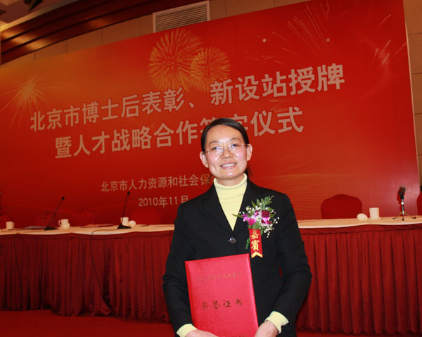 此次表彰是北京市自建立博士后制度以来,首次对优秀个人和机构进行表彰,此次全市共有10名博士后获此殊荣。