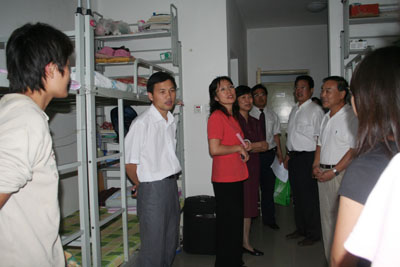 9月13日下午4点,中央财经大学党委副书记候慧君,原北京林业大学党委副书记张清泉,市委教育工委干部处主任科员寇红江一行三人在党委副书记王晓霞、纪委书记朱生利的陪同下,考察了学校党建进宿舍活动,走访了教职工活动中心,出席了食品系学生班级建设论坛。