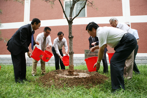 校长王有年、副校长杜晓林等与两位新聘任的名誉教授一起为中亚五国友谊树浇水,并且一同参观了植科教学示范中心、都市农业(北方)重点实验室。在都市农业重点实验室,生物技术学院院长师光禄带领实验室的工作人员和研究生为来宾详细介绍了实验室目前的主要工作情况,并详细讲解了实验仪器的主要功能。