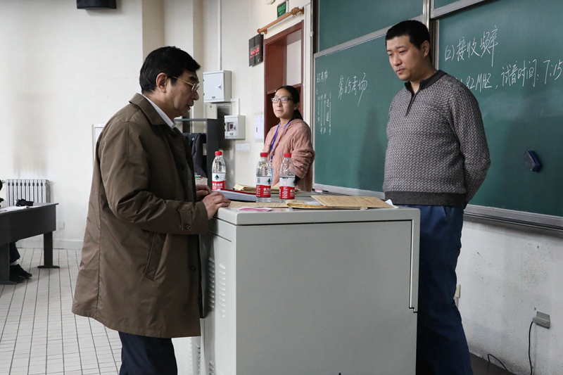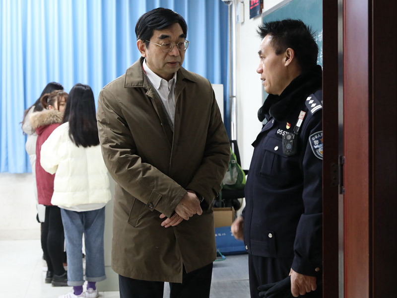 考试前一天,校党委书记杨军带领相关职能部门负责人,深入考场检查了考试准备工作。考试当天,杨军进行了考试全程巡视,认真查看了考场环境、考场秩序、保密室、播音室等具体情况,对考试现场的各环节进行了工作指导,并对本次考试的考务组织工作给予了充分肯定。