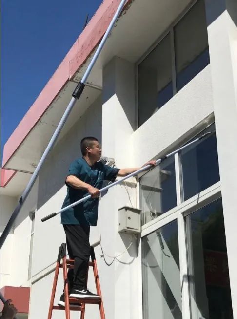 为了迎接2020年春季学期毕业生返校,后勤基建处物业管理服务中心在各楼宇里干得热火朝天,教学楼、办公楼、学院楼、公共浴室、体育场馆都有他们卫生消毒的身影,为了确保师生返校有一个安全整洁的环境,物业中心把通风、消毒时间确定到小时;中央空调聘请专业公司进行清理消毒;饮水机也邀请专业公司进行滤芯更换和水箱清洁消毒……他们用自己勤劳的双手给师生创造出了一个干净、整洁、安全的新环境,使学校每一个角落都充满生机。