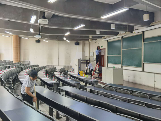 施工管理与维修科和动力保障服务中心积极为毕业生返校做准备,主要对学生公寓和学生食堂进行检修维护工作,为毕业生返校工作提供安全保证和后勤服务,重点落实校园疫情防控工作,为师生提供安全健康的校园环境。