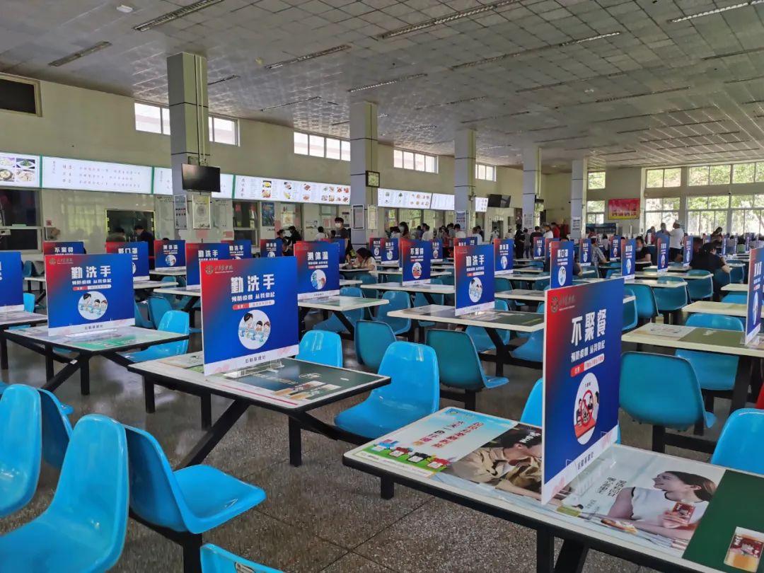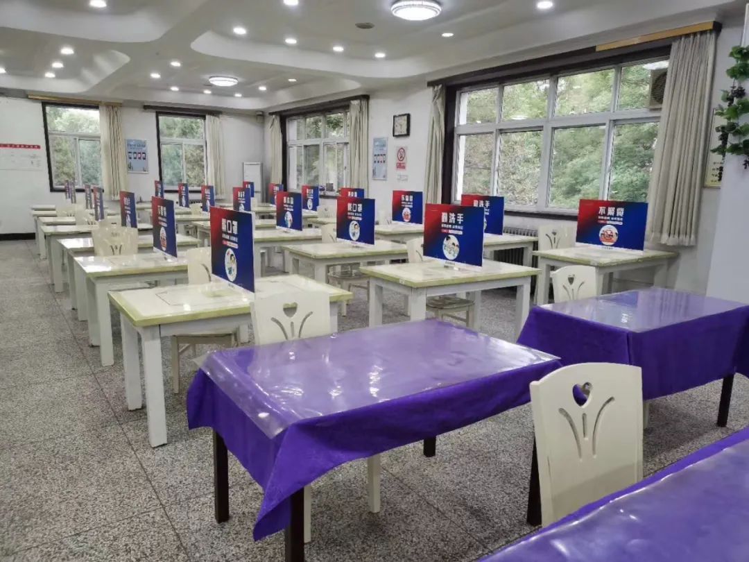 学生返校后,学生第二食堂继续推行“单入单出”的出口和入口,所有就餐学生需有效佩戴口罩并有序进行体温检测,点餐时按一米线排队,保证相互之间的安全距离,按市场监管总局的要求疫情期间餐厅暂停冷荤凉菜的供应,食堂推出同向“单人单座”就餐制,力求通过细致的工作为就餐学生建立一道安全屏障。