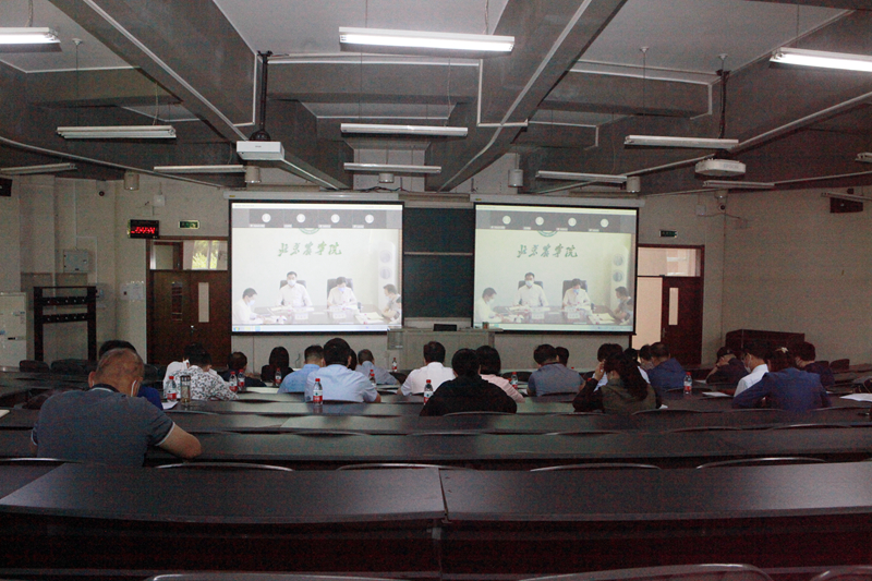 5月27日上午,学校采用视频方式召开2020年全面从严治党工作会。学校第三会议室作为主会场,教学楼B座101、102、103教室作为分会场。全体党委委员、纪委委员、中层干部、校级党风廉政建设监督员,党代会代表,民主党派代表,教授代表参加会议。党委副书记、校长王慧敏主持会议。