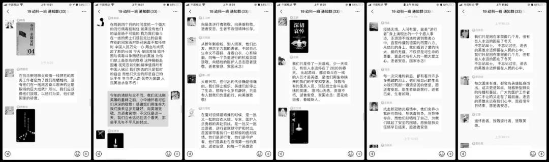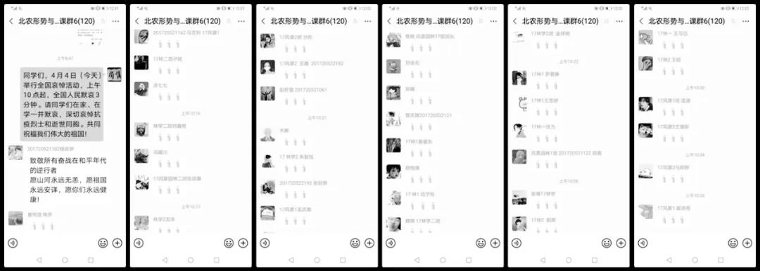 马克思主义学院组织学生在“形式与政策课”班级群内开展线上哀悼活动,动科学院等多个学院的学生在线上缅怀逝者,深切哀悼。