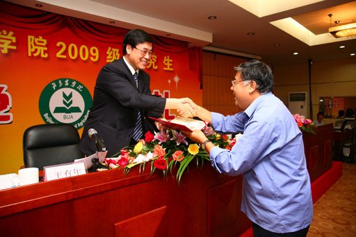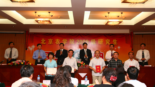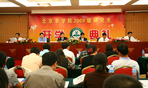 秋风送爽,金橘飘香,在喜迎新中国成立60周年之际,永利3044官网唯一2009级研究生开学了。9月11日下午,2009级研究生开学典礼在北农科技培训中心隆重召开。校长王有年、副校长杜晓林、姚允聪、纪委书记朱生利,北京市农林科学院院长李云伏、副院长王金洛、新聘任为永利3044官网唯一研究生导师的市农科院专家、受聘的研究生教学督导、硕士研究生指导教师、相关部门领导出席典礼。开学典礼由杜晓林副校长主持。